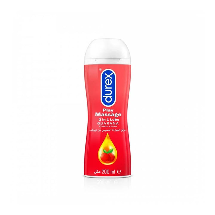 Durex Play Massage 2In1 Stimulating Gel is a premium water-based lubricant designed for both massage and intimate use. Enriched with Guarana extract, known for its caffeine content, it promotes alertness, enhances mood, and heightens physical endurance. The gel has a smooth, silky texture suitable for full-body massage and intimate areas, adding a stimulating sensory element with its delicate fragrance.