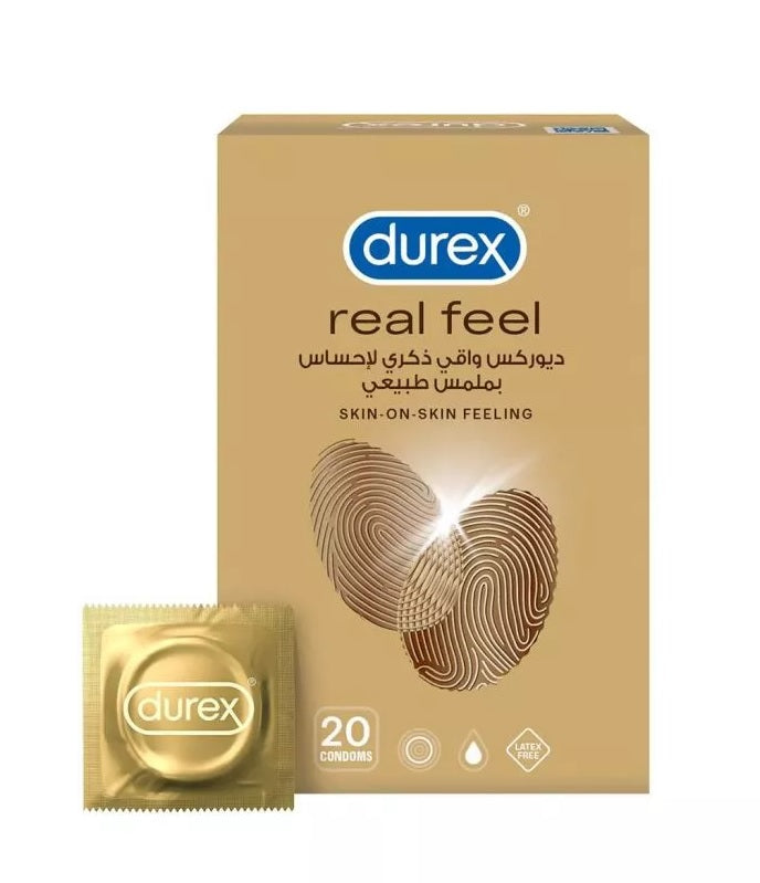 Durex Real Feel condoms are made from a unique, advanced non-latex material called polyisoprene, designed to mirror natural skin-on-skin sensation. They are transparent, lubricated, and have a teat-end shape for easy application. These condoms are suitable for individuals with latex allergies or sensitivities, offering a natural, sensitive experience without compromising safety.