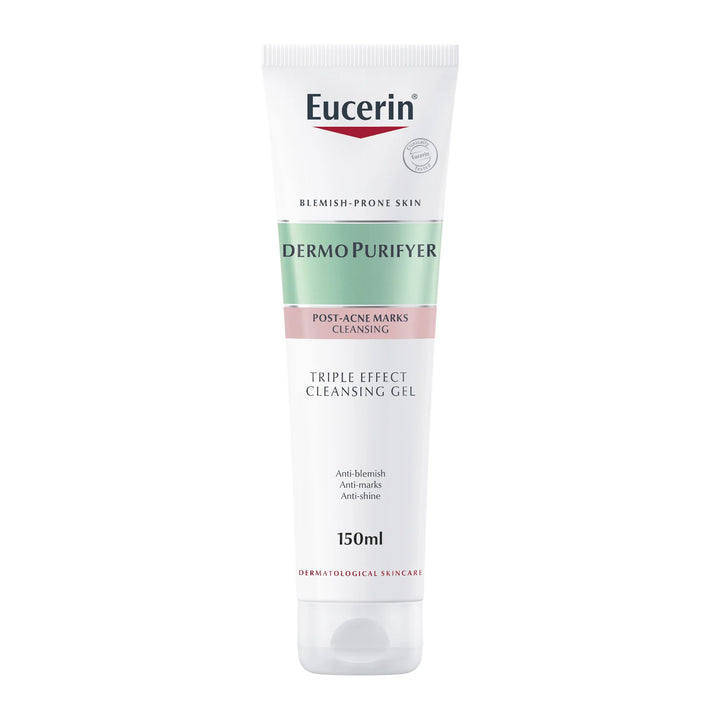 • Eucerin DermoPurifyer Triple Effect Body Cream 200 ml is a specialized body cream designed to reduce persistent body blemishes and post-acne marks, especially on areas prone to acne such as the back, chest, and shoulders. It combines three powerful effects: reducing blemishes, diminishing post-inflammatory hyperpigmentation (PIH), and providing soothing hydration.