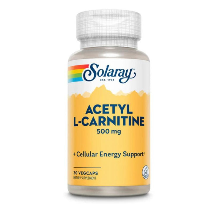 Solaray Acetyl L-Carnitine 500 mg capsules provide a bioavailable form of L-carnitine acetylated to support brain health and energy production. Acetyl L-carnitine crosses the blood-brain barrier to enhance cognitive function, memory, and mental performance. It also supports cardiovascular health and helps boost cellular energy, making it popular among athletes and individuals aiming to improve mental and physical vitality.