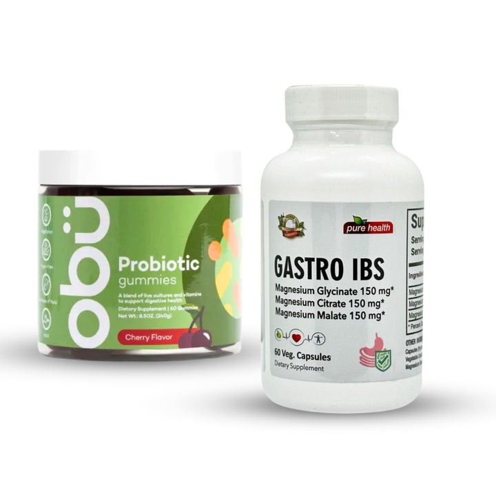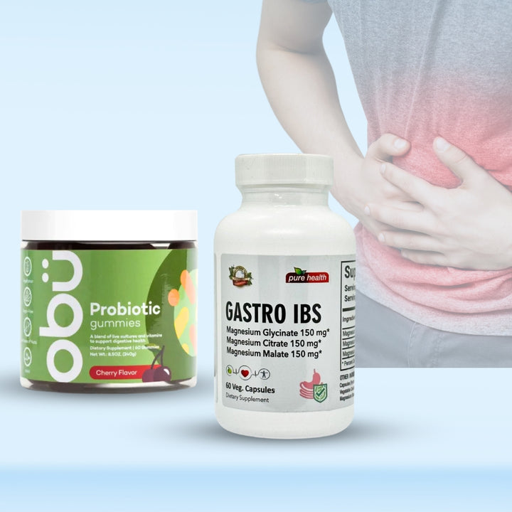 Together, the Obu Nutrition Probiotic Gummies and Pure Health Gastro IBS 60 Capsules provide a holistic approach to addressing stomach disorders and improving overall digestive health. The probiotic gummies help to repopulate the gut with beneficial bacteria, while the Gastro IBS capsules work to alleviate the symptoms of IBS and other digestive concerns. This comprehensive package can help individuals achieve optimal digestive function and find relief from persistent stomach issues.